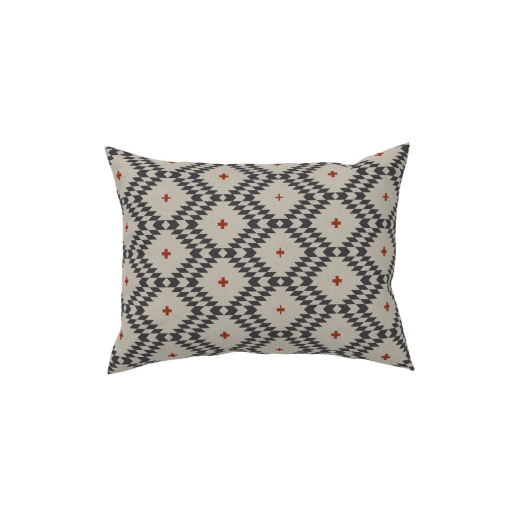 A modern arch border pillow with a woven black design and beige color, available in multiple sizes.