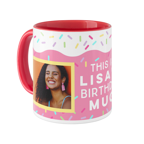 A stylish red notebook with personalized photo cover, black coil binding, and 150 lined pages.