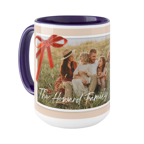 A multicolor ceramic mug with red exterior and personalized design, available in 11oz and 15oz sizes.