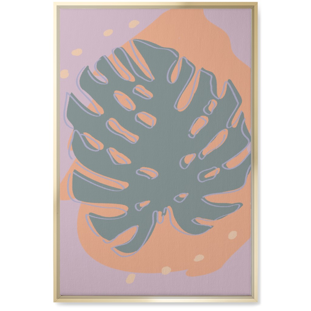 A green canvas wall art with fern leaf V design, ready to hang and made in USA.