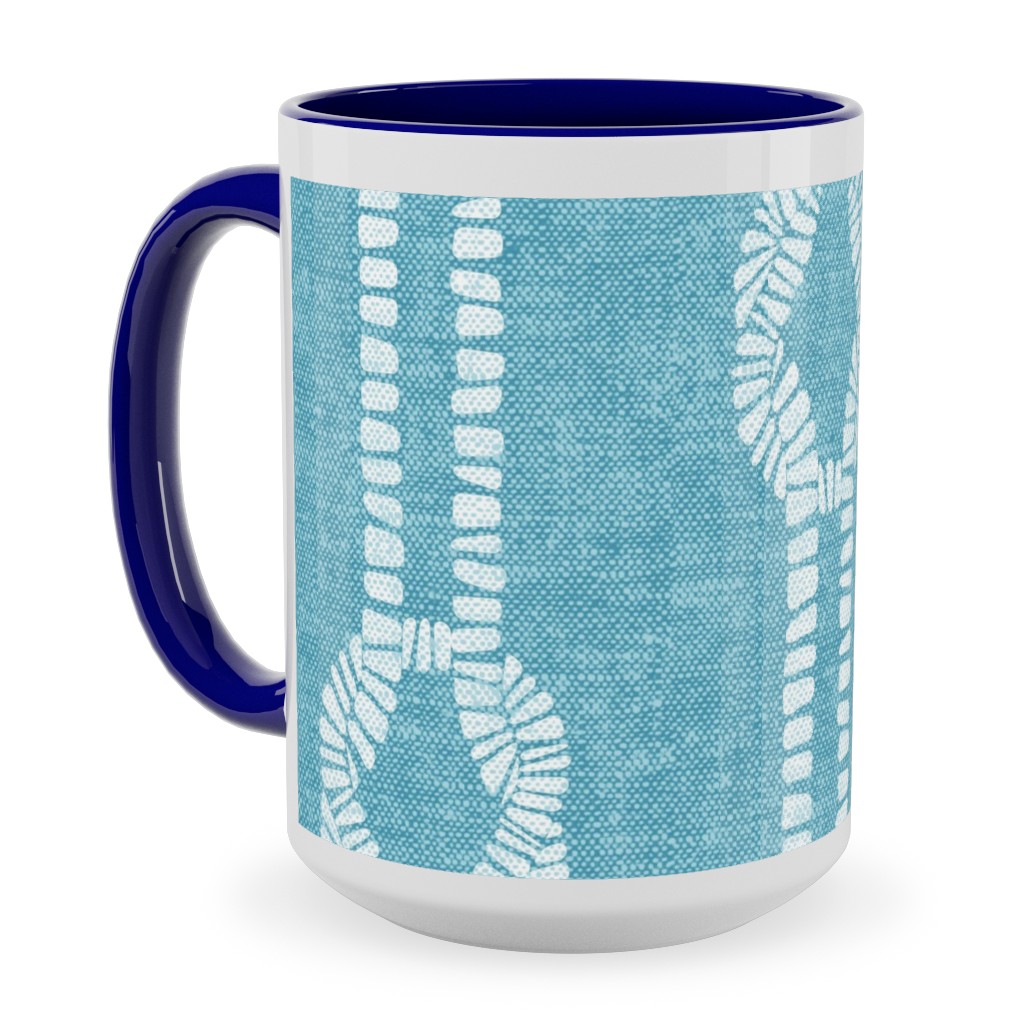 A light blue ceramic mug with sailboat design, available in 11 oz. and 15 oz. sizes.