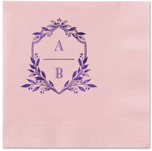 A set of 50 recycled paper napkins in purple with various foil-stamp color options, including blush.