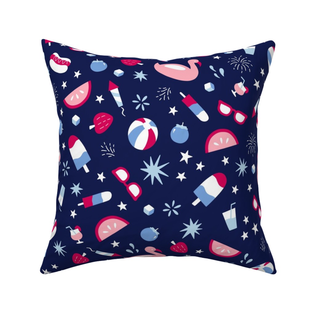 A 16x16 dark blue woven pillow with a hidden zipper enclosure and synthetic-filled insert.