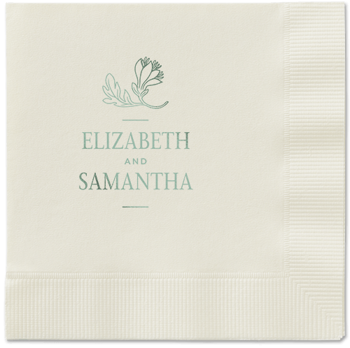 A set of 50 recycled paper napkins in green and navy with customizable foil-stamped designs.