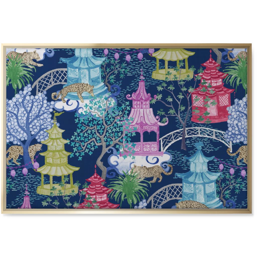 A multicolor and gold wall art featuring a leopard pagoda scenic design, made with sustainably sourced poly-cotton canvas....
