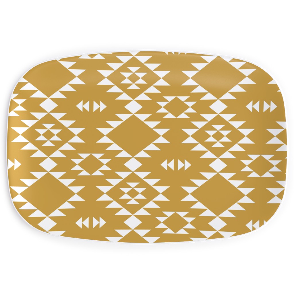 A vibrant, scratch-resistant serving platter with geometric design, made of non-toxic melamine.