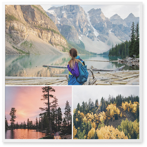 A framed set of three lightweight photo tiles with high-resolution, archival-quality images and easy-to-hang adhesive.