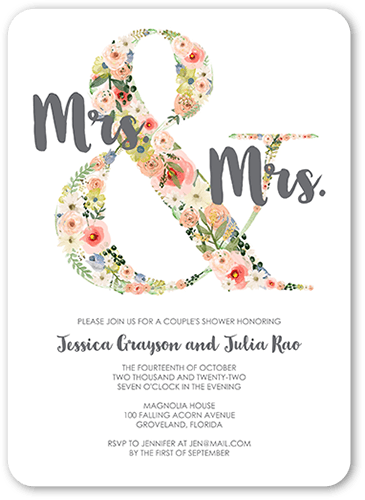 Shutterfly offers a vast collection of bridal shower invite themes for every type of bride. Pop the confetti! It's time to celebrate the bride in your life. If you're a bridesmaid, you'll be a part of the bridal shower party planning and should help customize the invitations. Whether you’re organizing a large daytime celebration or going small with a simple and chic brunch, Shutterfly carries an assortment of bridal shower invitation styles and photo card designs to match. If you’re looking for dainty and rustic bridal shower invitations, choose from an array of lovely floral shower designs, inspired by all things garden. Our wide selection of floral bridal shower invitations make for a memorable tea party bridal shower theme or a rustic shower soiree! Choose from gorgeous typography and brunch invitation styles to make the perfect bridal shower invitation that will live on as a memorable keepsake from her big day.