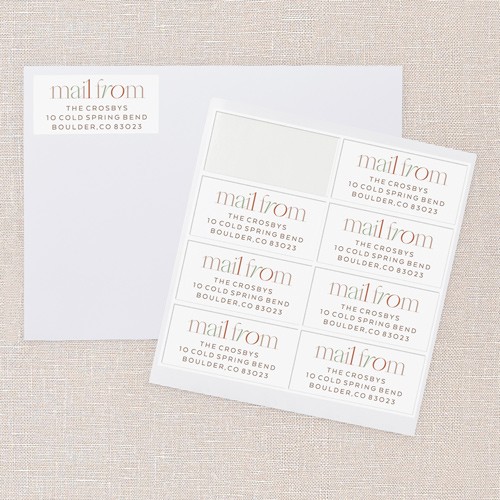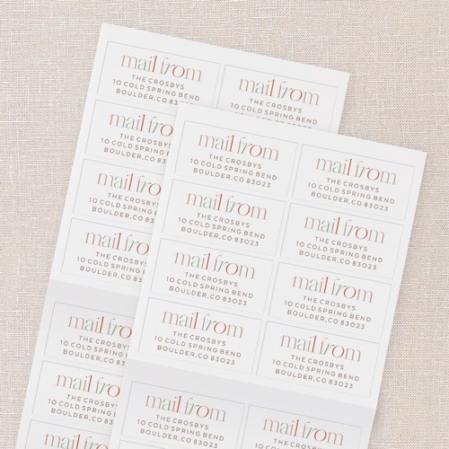 Address your envelopes with stylish address labels. Corresponding invitations gift tags and thank you cards are also available.