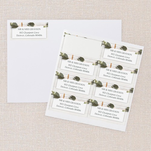 Address your envelopes with stylish address labels. Corresponding invitations gift tags and thank you cards are also available.