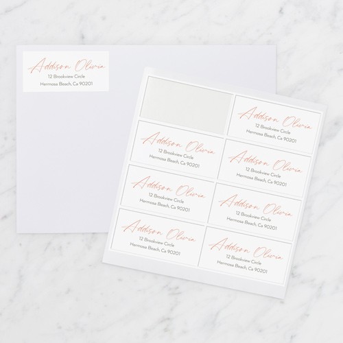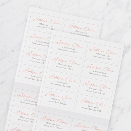 Address your envelopes with stylish address labels. Corresponding invitations gift tags and thank you cards are also available.