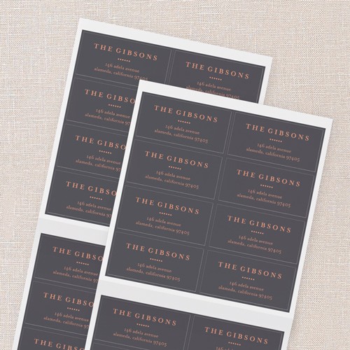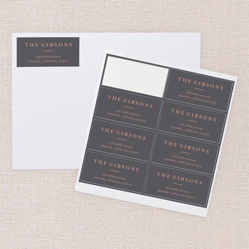 Address your envelopes with stylish address labels. Corresponding invitations gift tags and thank you cards are also available.
