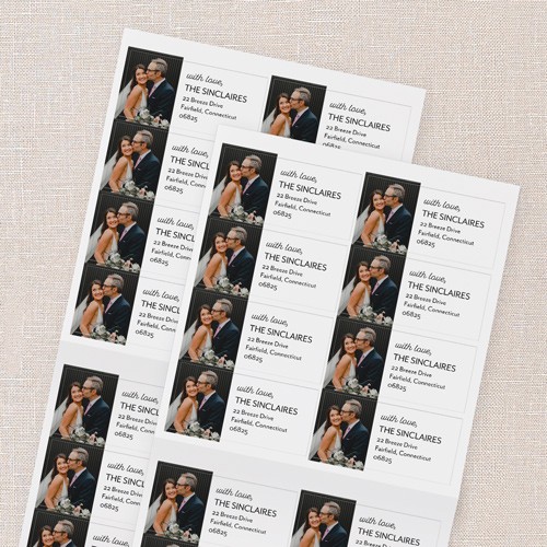 Address your envelopes with stylish address labels. Corresponding invitations gift tags and thank you cards are also available.