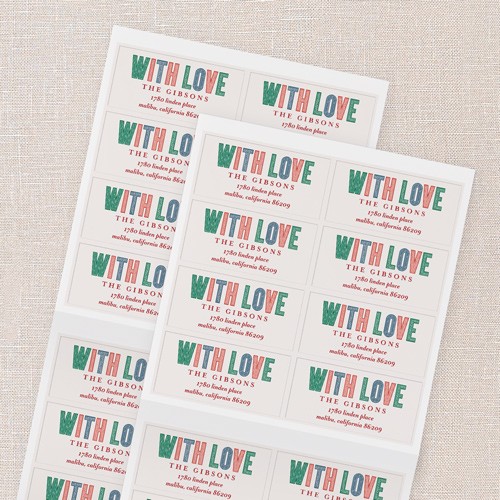 Address your envelopes with stylish address labels. Corresponding invitations gift tags and thank you cards are also available.