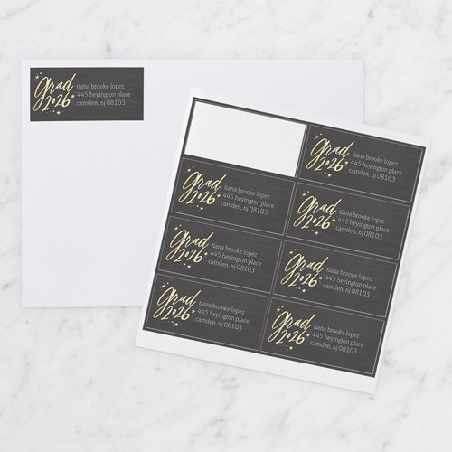 Address your envelopes with stylish address labels. Corresponding invitations, gift tags and thank you cards are also available.