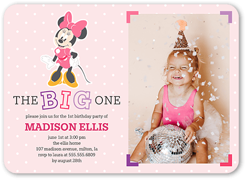 Disney Minnie Mouse First Birthday Birthday Invitation