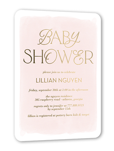 Shower her with love and a stylish baby shower invitation. Personalize it with the party details.