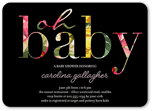 Shower her with love and a stylish baby shower invitation. Personalize it with the party details.