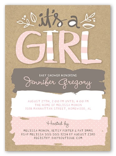 Shower her with love and a stylish baby shower invitation. Personalize it with the party details.