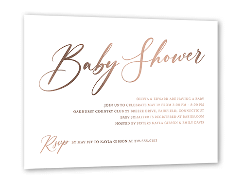 Shower her with love and a stylish baby shower invitation. Personalize it with the party details.