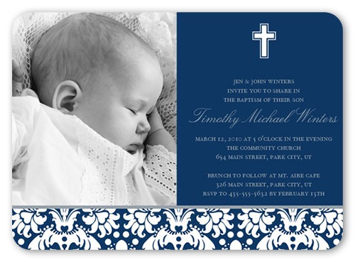 Invite everyone to this memorable and blessed occasion. Personalize this baptism invitation with all the event details.