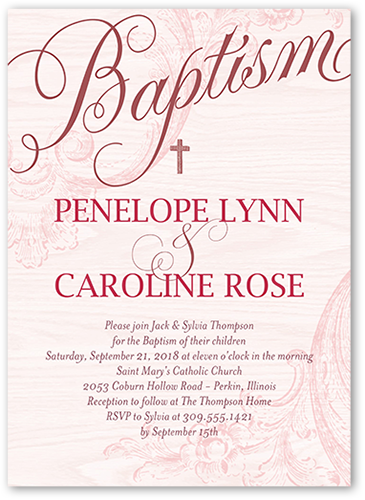 Invite everyone to this memorable and blessed occasion. Personalize this baptism invitation with all the event details.