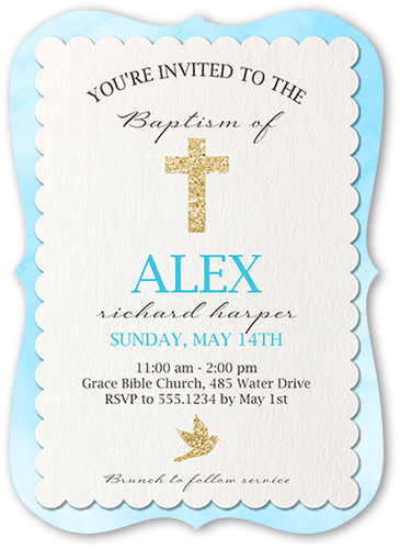 Invite everyone to this memorable and blessed occasion. Personalize this baptism invitation with all the event details.