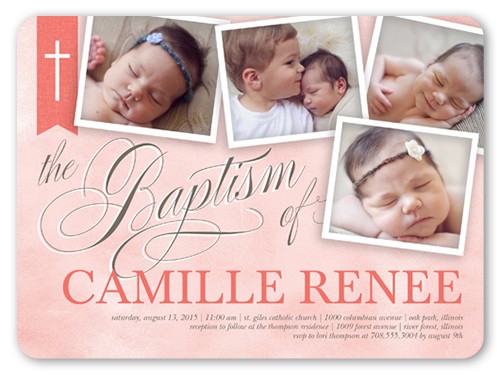 Invite everyone to this memorable and blessed occasion. Personalize this baptism invitation with all the event details.