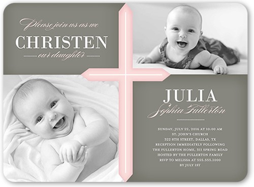 Invite everyone to this memorable and blessed occasion. Personalize this baptism invitation with all the event details.