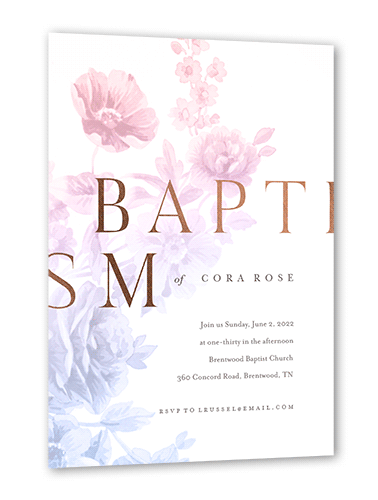 Honor a blessed occasion with elegant touches of foil and artistic, modern designs. Personalize it with all the details for a keepsake-worthy baptism invitation.