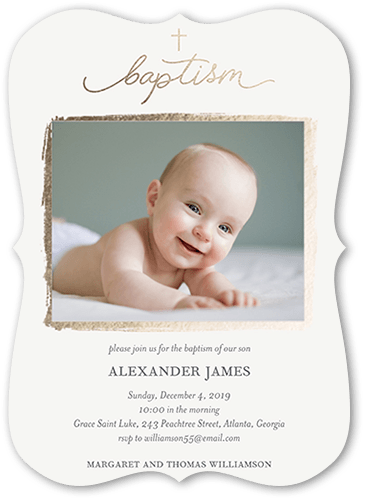 Invite everyone to this memorable and blessed occasion. Personalize this baptism invitation with all the event details.