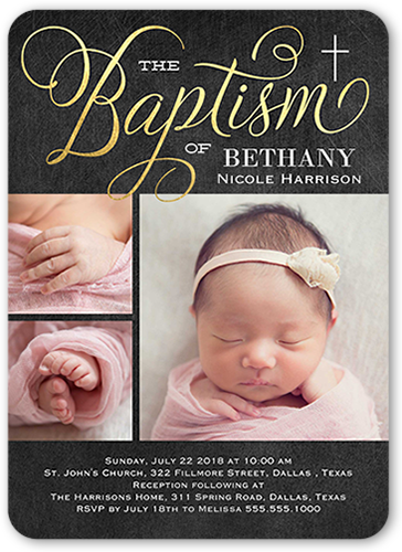 Invite everyone to this memorable and blessed occasion. Personalize this baptism invitation with all the event details.
