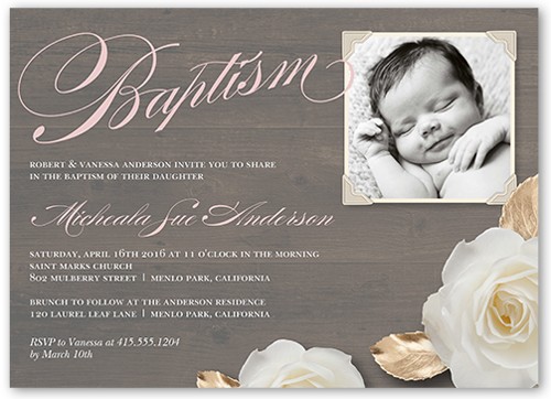 Invite everyone to this memorable and blessed occasion. Personalize this baptism invitation with all the event details.
