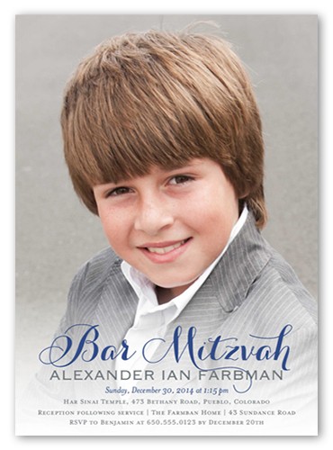 Mazel Tov! Celebrate your son's Bar Mitzvah with a personalized Bar Mitzvah invitation. Just add his photos and event details.