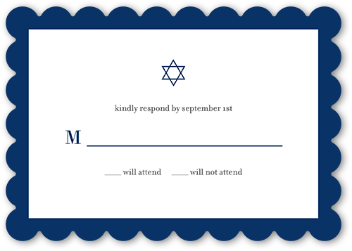 Matching personalized Bar Mitzvah response cards will help you keep track of all the guests coming to the celebration.