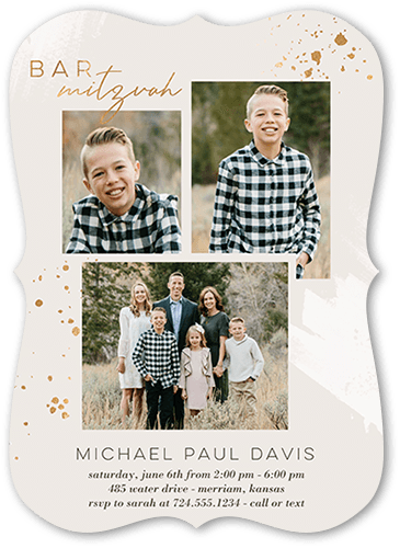 Mazel Tov! Celebrate your son's Bar Mitzvah with a personalized Bar Mitzvah invitation. Just add his photos and event details.
