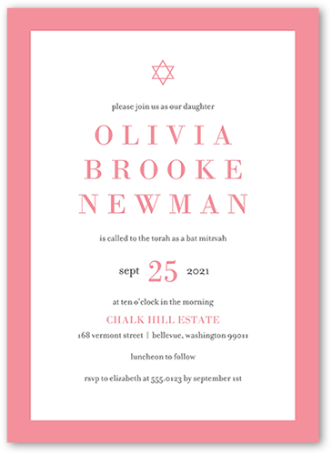 Mazel Tov! Celebrate your daughter's Bat Mitzvah with a personalized Bat Mitzvah invitation. Just add her photos and event details.