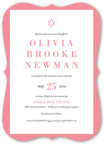 Mazel Tov! Celebrate your daughter's Bat Mitzvah with a personalized Bat Mitzvah invitation. Just add her photos and event details.