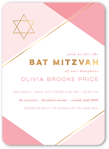 Mazel Tov! Celebrate your daughter's Bat Mitzvah with a personalized Bat Mitzvah invitation. Just add her photos and event details.