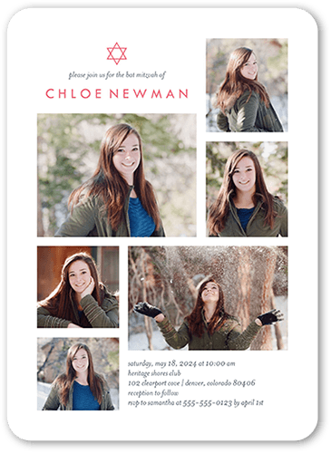 Mazel Tov! Celebrate your daughter's Bat Mitzvah with a personalized Bat Mitzvah invitation. Just add her photos and event details.