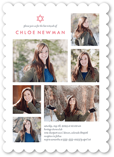 Mazel Tov! Celebrate your daughter's Bat Mitzvah with a personalized Bat Mitzvah invitation. Just add her photos and event details.