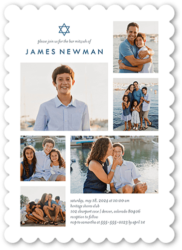 Mazel Tov! Celebrate your son's Bar Mitzvah with a personalized Bar Mitzvah invitation. Just add his photos and event details.