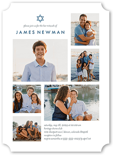 Mazel Tov! Celebrate your son's Bar Mitzvah with a personalized Bar Mitzvah invitation. Just add his photos and event details.