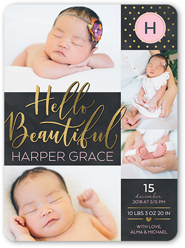 Announce your newest arrival with this stylish birth announcement. Add your baby's name, a favorite photo and the news everyone's been waiting for.