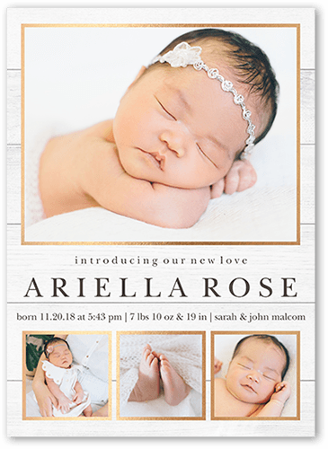 Announce your newest arrival with this stylish birth announcement. Add your baby's name, a favorite photo and the news everyone's been waiting for.