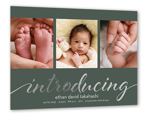 Announce your newest arrival with this stylish birth announcement. Add your baby's name, a favorite photo and the news everyone's been waiting for.
