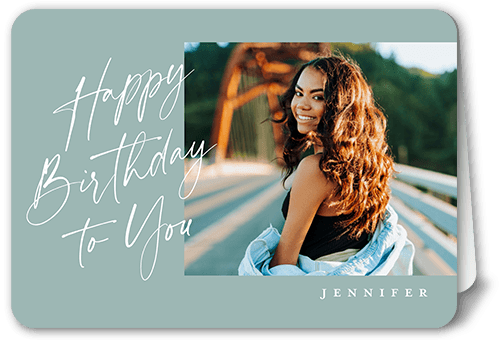 Another year older. Send personalized celebratory greetings with a favorite photo and your own message in this stylish birthday card.