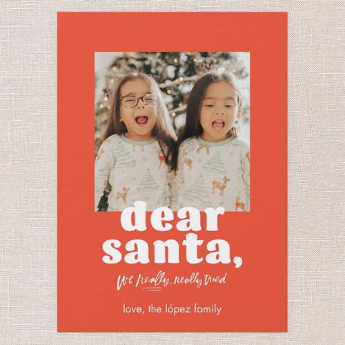 Send a Christmas card friends and family will love. Add your own greeting and everyone's names. There's room for more photos and wishes on the back, too.