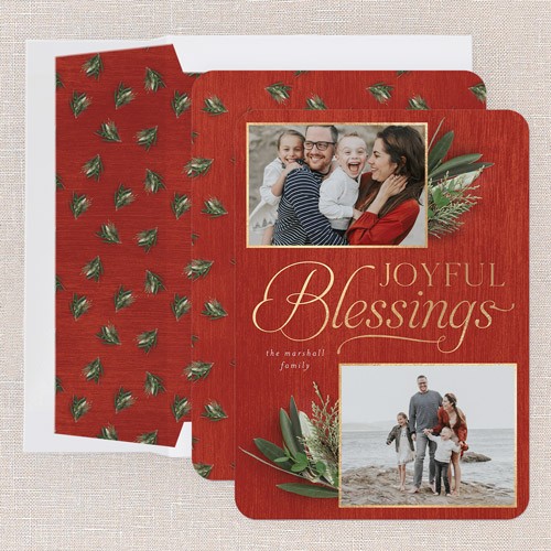 Send a Christmas card friends and family will love. Add your own greeting and everyone's names. There's room for more photos and wishes on the back, too.