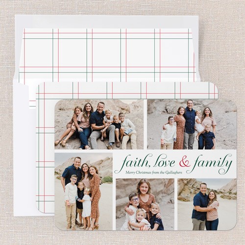 Send a Christmas card friends and family will love. Add your own greeting and everyone's names. There's room for more photos and wishes on the back, too.